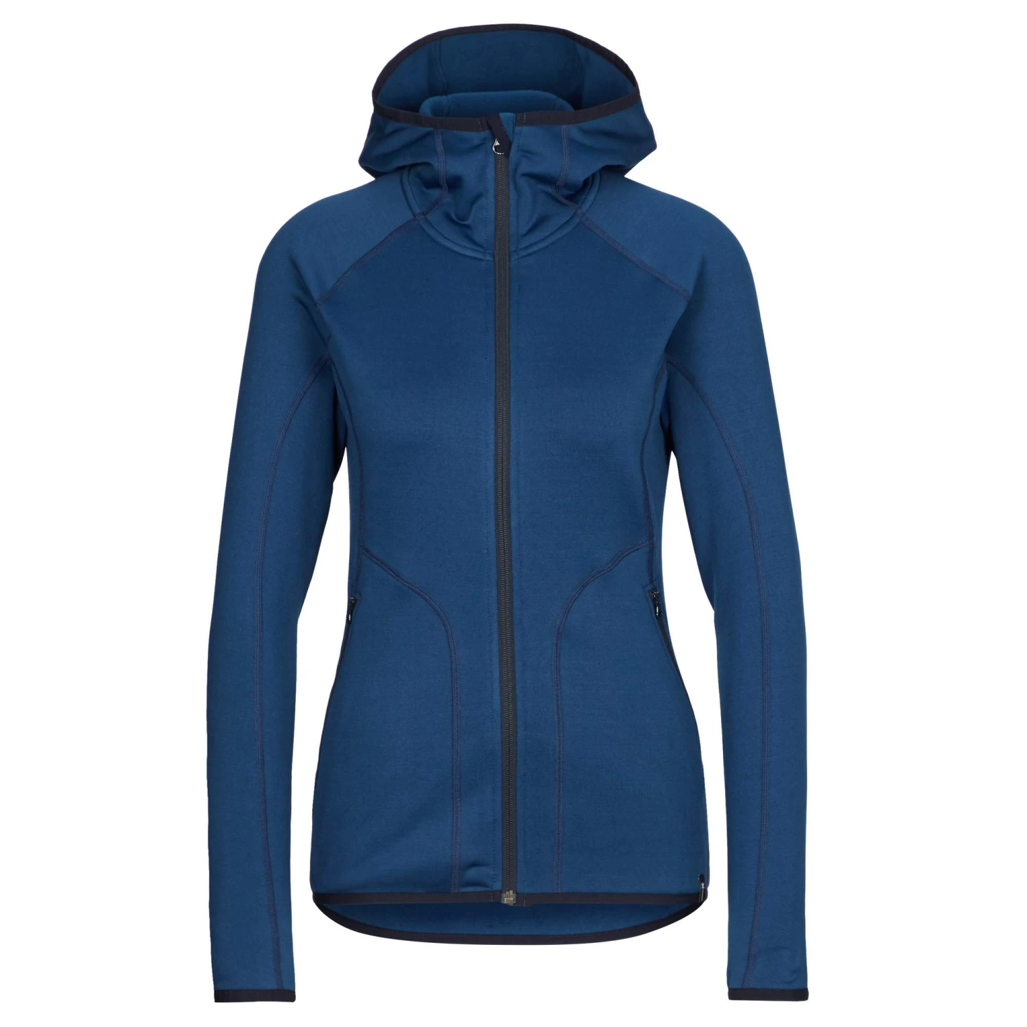 Die Kapuze kommt jetzt mit einer elastischen Einfassung daher und sitzt dadurch bequem und sicher auf dem Kopf. Die Flatlock-Nähte wirken unangenehmer Reibung im Schichtsystem entgegen. Der Schulterbereich und die Seiten sind nahtfrei gehalten, so trägt sich die Jacke z.B. beim Wandern auch in Kombination mit einem Rucksack sehr angenehm. Außerdem entsteht durch die versetzten Nähte eine schöne, schlanke Silhouette.